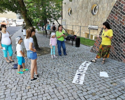 Kilkadziesiąt dzieci bierze udział w grze miejskiej „Lot trzmiela” w Opolu. Rozwiązują zagadki, bawią się, tańczą. To propozycja na wakacje przygotowana przez Filharmonię Opolską i Urząd Marszałkowski.