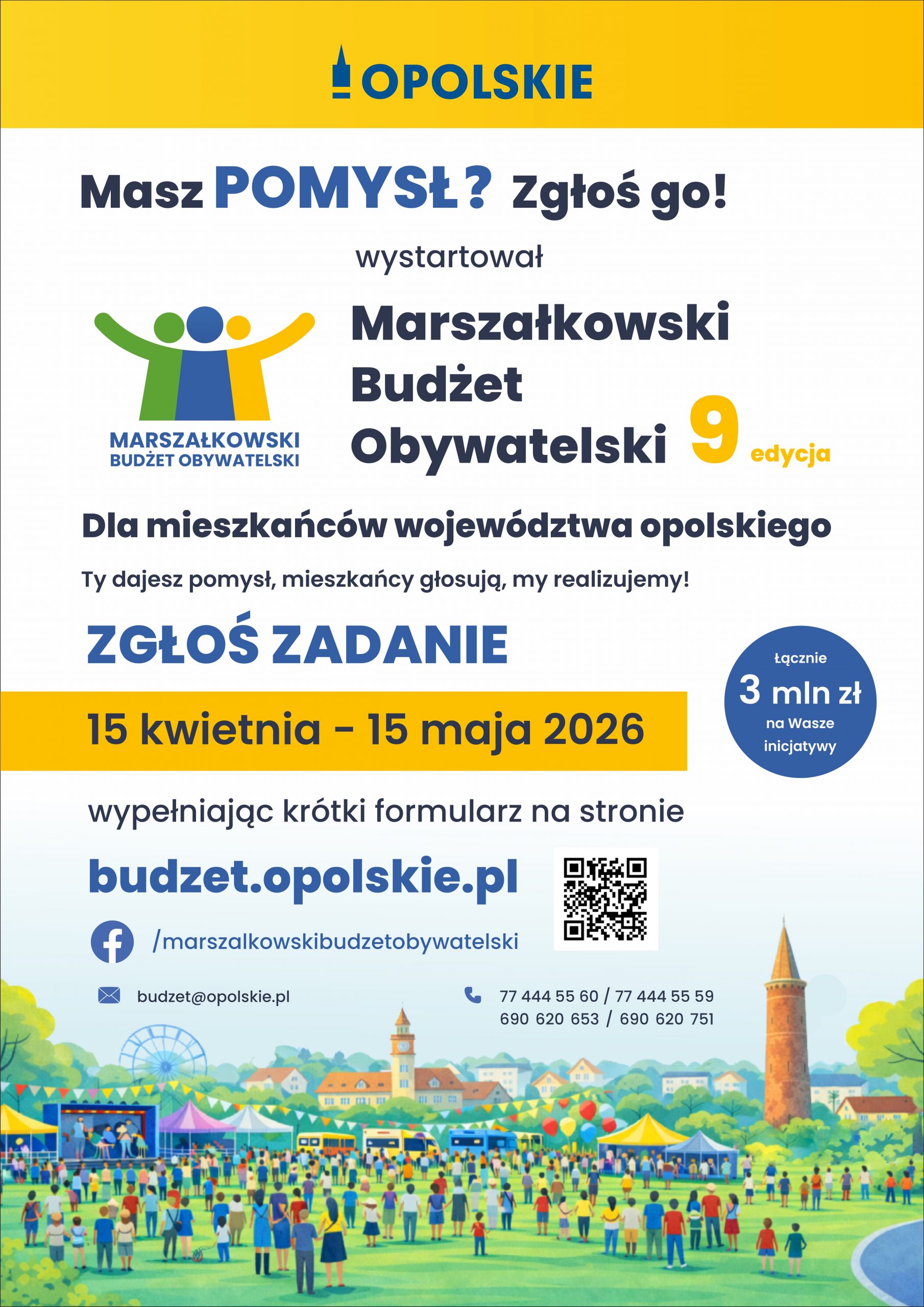 Może je zgłosić każdy mieszkaniec województwa – bez względu na wiek. Jeśli ma mniej niż 16 lat – musi posiadać zgodę rodzica lub opiekuna prawnego. Termin na zgłoszenia mija 15 maja – trzeba to zrobić poprzez platformę internetową MBO, którą znajdziecie na stronie: https://budzet.opolskie.pl